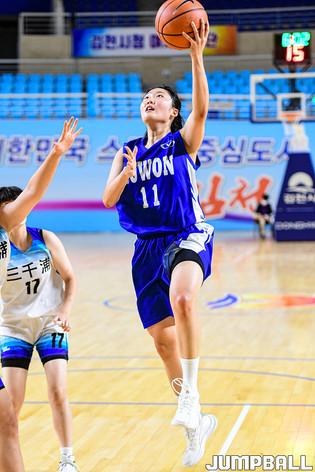 22일 경상북도 김천실내체육관에서 열린 2021 연맹회장기 전국남녀중고농구대회 김천대회 여고부 수원여고와 삼천포여고 결승전 경기, 수원여고 김민아가 벤치에서 팀원들을 응원하고 있다.