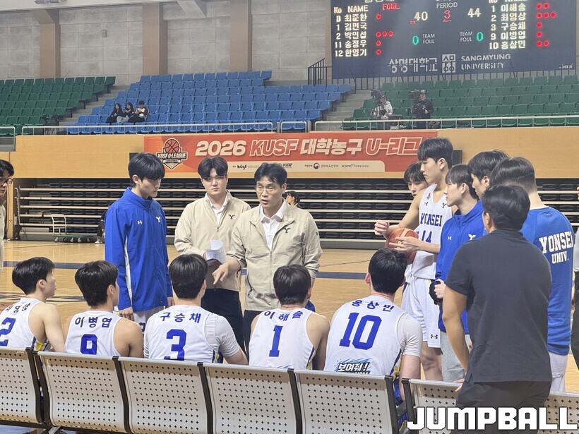 상명대는 3일 상명대학교 천안캠퍼스에서 열린 2026 KUSF 대학농구 U-리그 홈 경기에서 연세대에게 56-63으로 아쉽게 졌다.