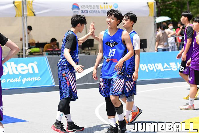 [점프볼=양구/박상혁 기자] 19일과 20일 양구청춘체육관 앞 특설코트에서 KB국민은행 LIIV m 3X3 코리아투어 IN 양구 대회가 열렸다. 고등부 하트스포츠가 승리한후 환호하고 있다.