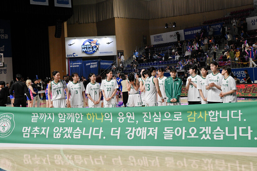 하나은행으로선 1승 1패 상황에서 맞은 3차전의 아쉬움을 곱씹을 수밖에 없는 시리즈였다. 전반 한때 16점까지 달아나며 시리즈 우위를 되찾는 듯했지만, 3쿼터 스코어 9-16에 그치며 추격의 빌미를 제공했다. 결국 연장까지 가는 접전 끝에 패했고, “여파가 없진 않을 것”이라는 이상범 감독의 우려대로 4차전까지 내주며 시즌을 마쳤다.