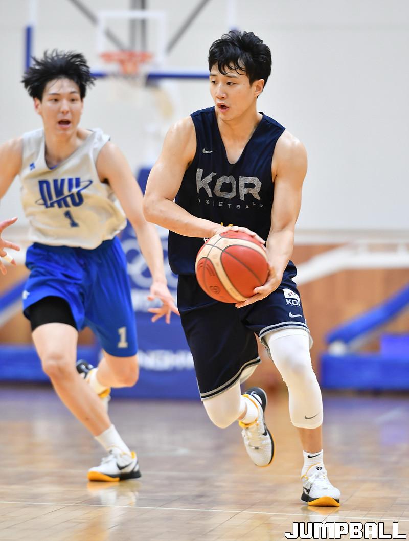 추일승 감독이 이끄는 남자농구대표팀은 오는 7월 12일부터 24일까지 인도네시아 자카르타에서 열리는 2022 FIBA 남자농구 아시아컵에 출전한다. 30일 진천국가대표선수촌 열린 단국대와의 연습경기에서 허웅이 앞으로 패스를 하고 있다.