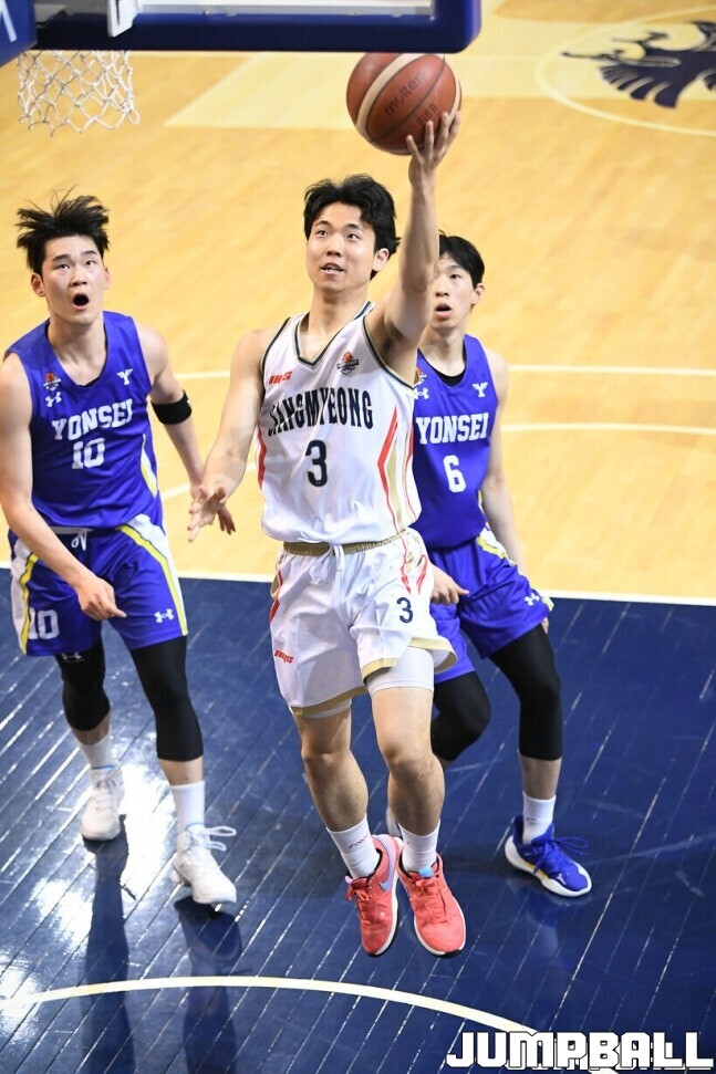 또, 연장 혈투 끝에 2점차로 석패했던 4월 30일 경희대 전에선 3점슛 6개를 엮어 20점을 폭발하는 등 임팩트 있는 활약을 남기기도 했다. 이 때문에 상명대 차기 에이스는 신입생인 윤용준이라는 말도 나왔다.