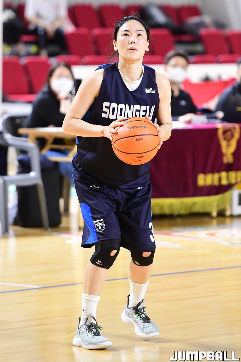 22일 김천실내체육관에서 열린 2022 전국실업농구연맹전 겸 제 41회 어머니 농구대회 숭의와 부산의 경기, 숭의 박선영이 3점슛을 시도하고 있다.