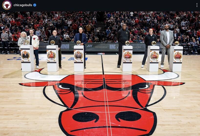 시카고 불스는 23일(한국시간) 미국 일리노이주 시카고 유나이티드 센터에서 열린 워싱턴 위저즈와의 NBA 2025-2026시즌 홈경기 하프타임에 ‘링 오브 아너(Ring of Honor)’를 진행했다.