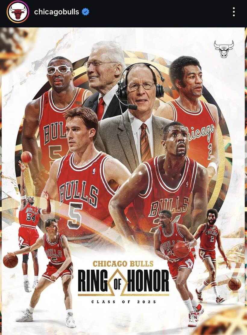 ‘링 오브 아너’는 시카고가 위대한 역사를 만드는 데에 공헌한 선수, 코칭스태프, 프런트를 선정해 업적을 기리는 행사다. 지난 2024년 진행된 초대 ‘링 오브 아너’에서는 1990년대 황금기를 이끌었던 ‘농구 황제’ 마이클 조던을 비롯해 스카티 피펜, 데니스 로드맨 등 총 13명의 선수와 1995-1996시즌 팀, 필 잭슨 감독, 제리 크라우스 단장이 선정됐다.
