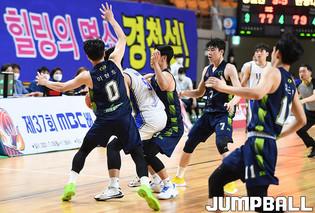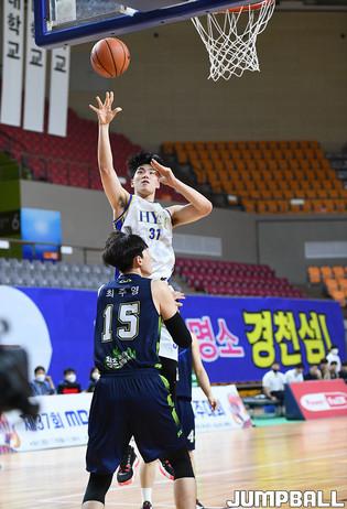 28일 경북 상주실내체육관에서 열린 제37회 MBC배 전국대학농구 상주대회 결승전으로 한양대와 연세대의 경기, 연세대 이원석이 경기시작 점프볼을 선점하고 있다.