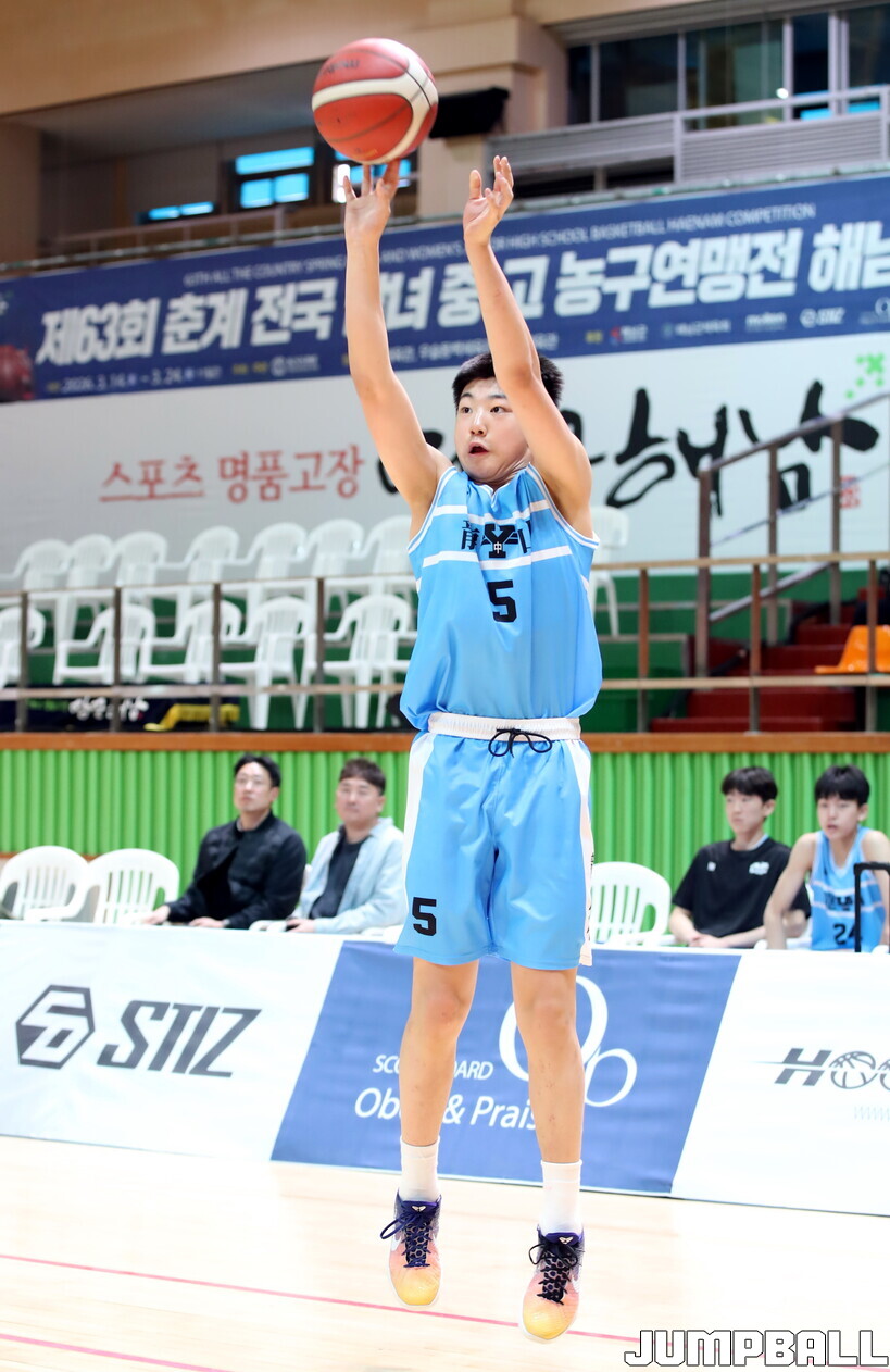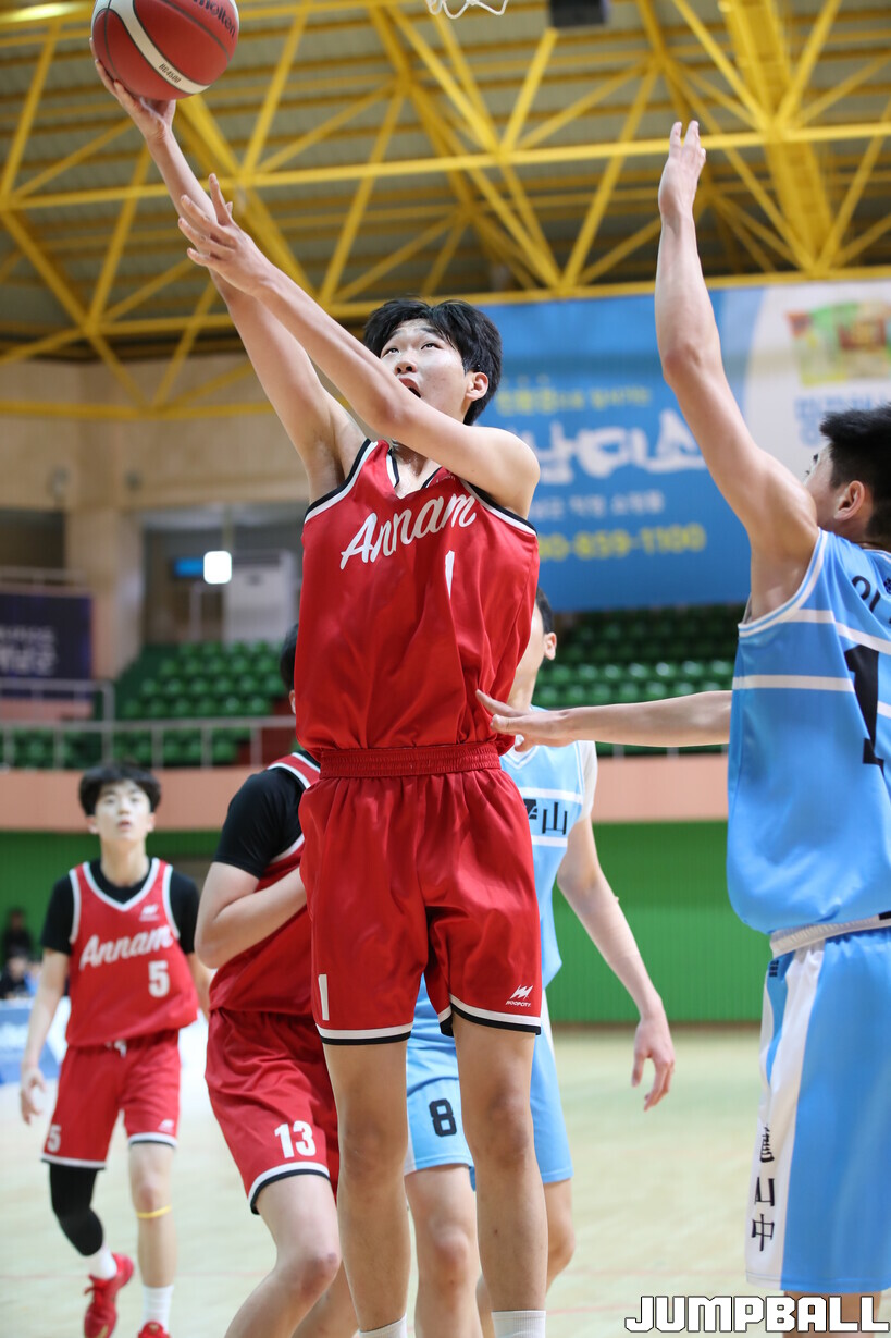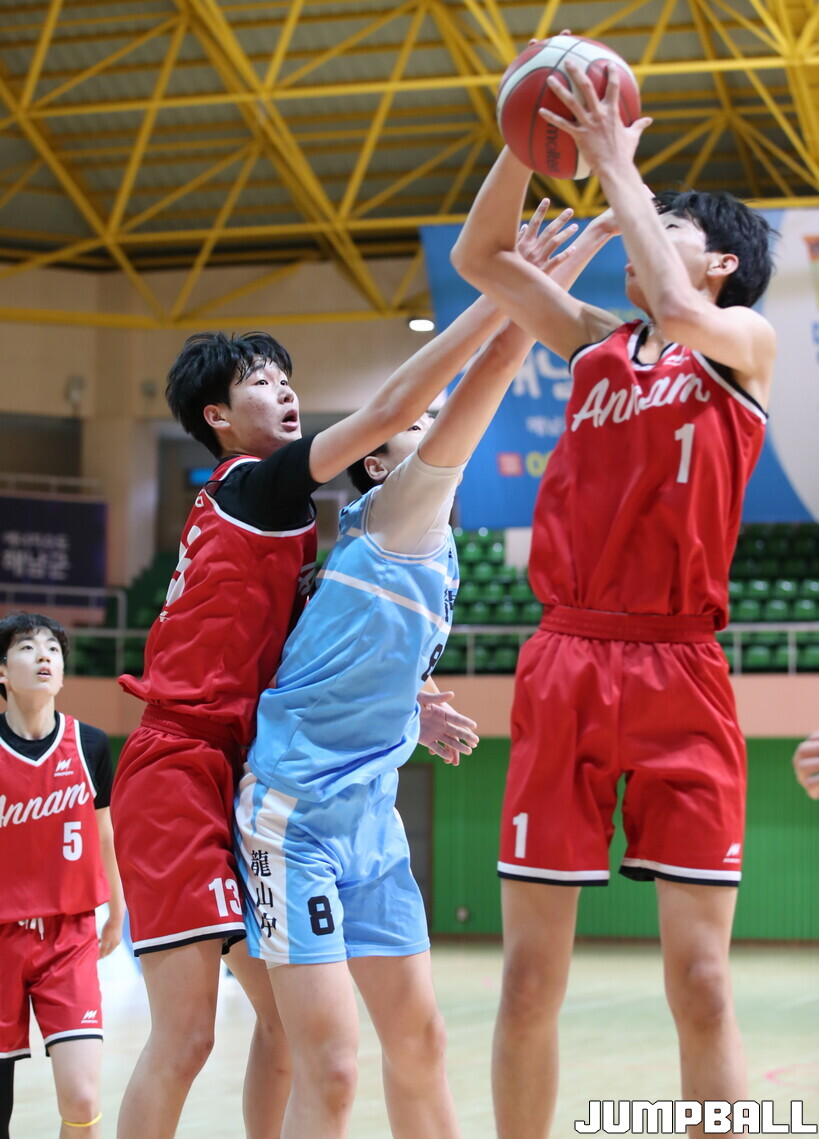 23일 전남 해남 우슬체육관에서 열린 제63회 춘계전국남녀 중고농구연맹전 남중부 결승전 경기, 조직력에서 한 수 우위를 보인 용산중이 시종일관 경기를 주도하며 81-56으로 안남중을 완파하며 시즌 첫 우승 트로피의 주인공이 됐다.