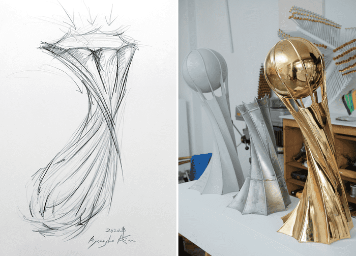 어찌 보면 트로피 제작은 새로운 제품을 개발하는 거잖아요. 금속만 가지고 만들다 보니 더 복잡한 프로세스를 거치게 되고, 그 과정에서 목업도 수차례 변경되고, 주문 오류도 있었어요. 버려진 것들이 더 많죠. 골대 그물이 농구공을 감싸야하니 양각 작업도 필요했고요. 정말 많은 엔지니어들과 협력을 했는데, 여태껏 가장 어려웠던 작업 중 하나이기도 했어요.
