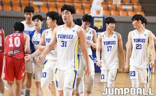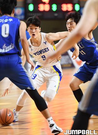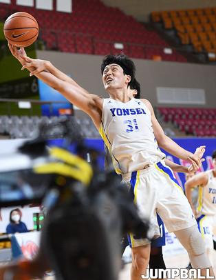 28일 경북 상주실내체육관에서 열린 제37회 MBC배 전국대학농구 상주대회 결승전으로 한양대와 연세대의 경기, 연세대 이원석이 리바운드를 잡고 괴로운 표정을 짓고 있다.