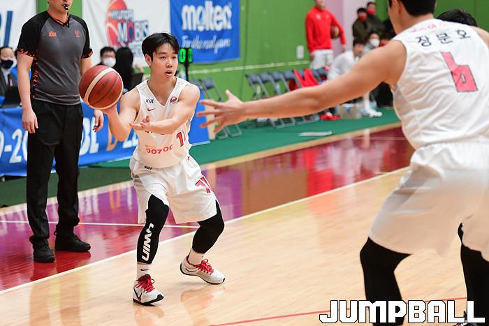 [점프볼=이천/박상혁 기자] 4일 경기도 이천 LG챔피언스파크에서 열린 2020-2021 KBL D리그 1차대회 SK와 상무의 결승전 경기, SK 김준성이 패스를 시도하고 있다.