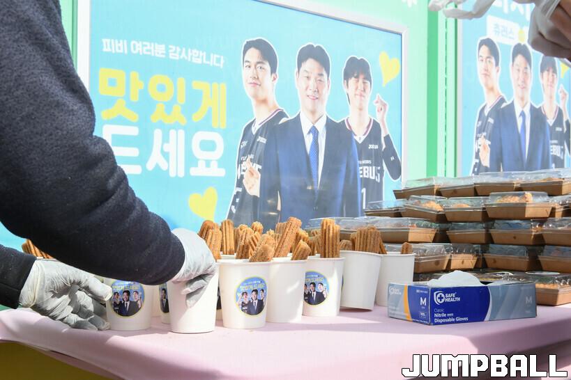 현대모비스는 이날 경기 전에 올스타 팬 감사 이벤트를 진행했다. 올스타 투표로 올스타게임에 출전한 이우석과 박무빈, 팀 순위 2위로 올스타 감독으로 참석한 조동현 감독이 팬들을 위해 간식차를 준비했다. 간식은 붕어빵과 츄러스였다.