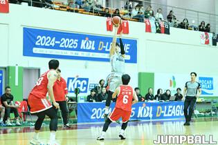 [점프볼=이천/유용우 기자] 17일 이천 LG챔피언스파크에서 열린 2024-2025 KBL D리그 서울 SK와 울산 현대모비스의 경기, SK 김형빈이 공격을 시도하고 있다.