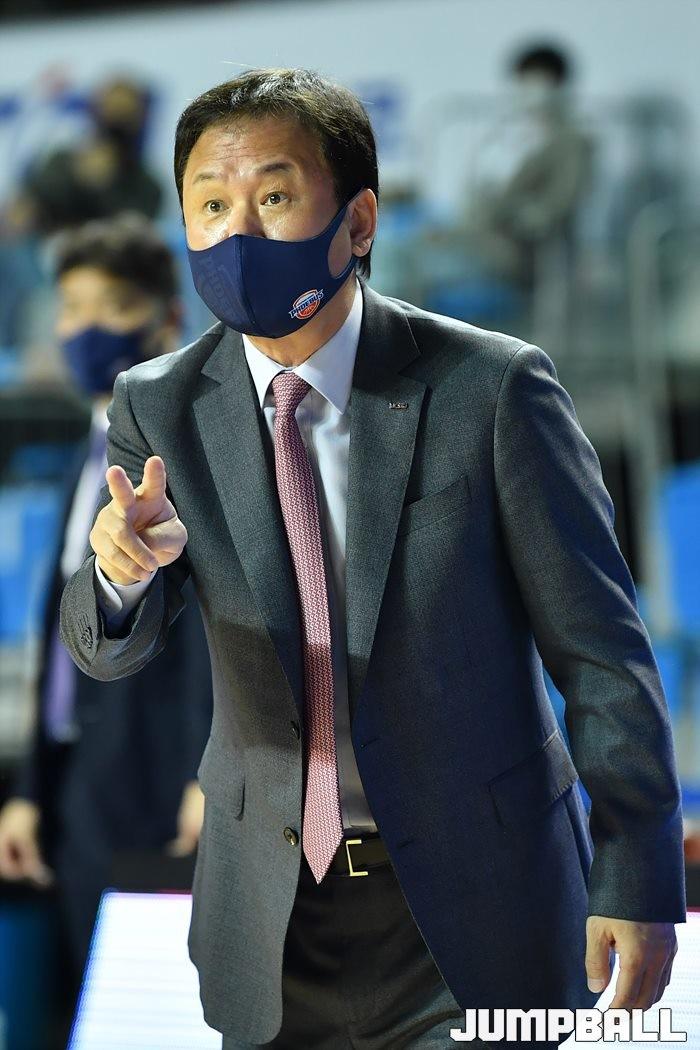 [점프볼=전주/유용우 기자] 20일 전주실내체육관에서 열린 2020-2021 현대모비스 프로농구 전주 KCC와 울산 현대모비스의 경기, 현대모비스 유재학 감독이 작전을 지시하고 있다.