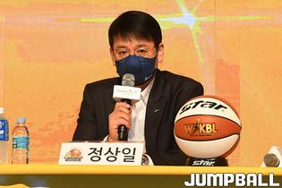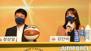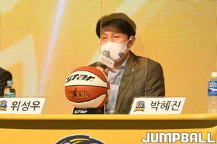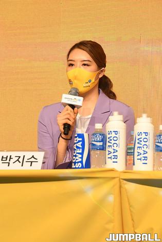 [점프볼=서울/박상혁 기자] 25일 여의도 63컨벤션센터 그랜드볼룸에서 열린 'KB국민은행 Liiv M 2020-2021 여자프로농구' 플레이오프 미디어데이, 우리은행 박혜진이 기자단의 질문에 답하고 있다.