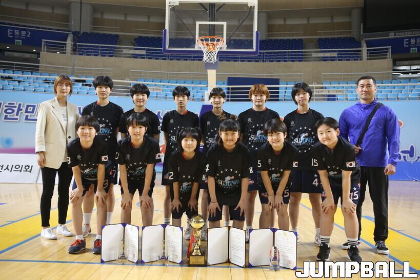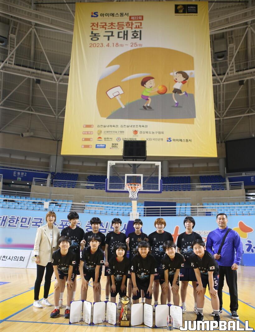 [점프볼=김천/한필상 기자] 25일 김천 실내체육관에서 열린 제22회 전국초등학교 농구대회 남,녀 초등부 결승전에서 성남 수정초와 울산 송정초의 우승으로 대단원의 막이 내렸다.