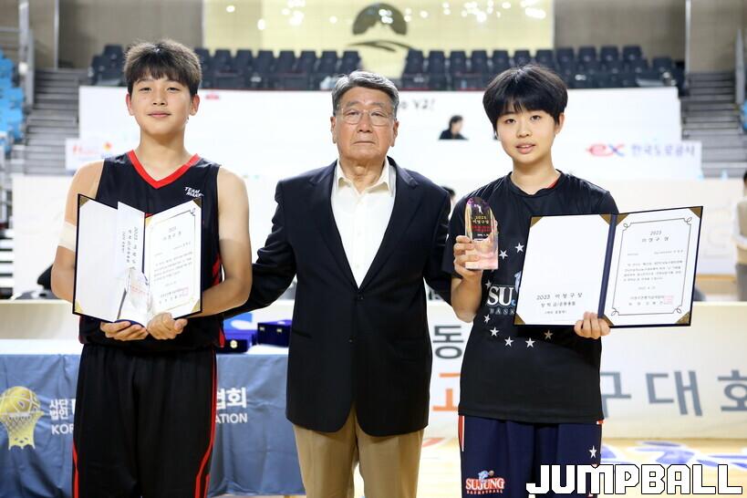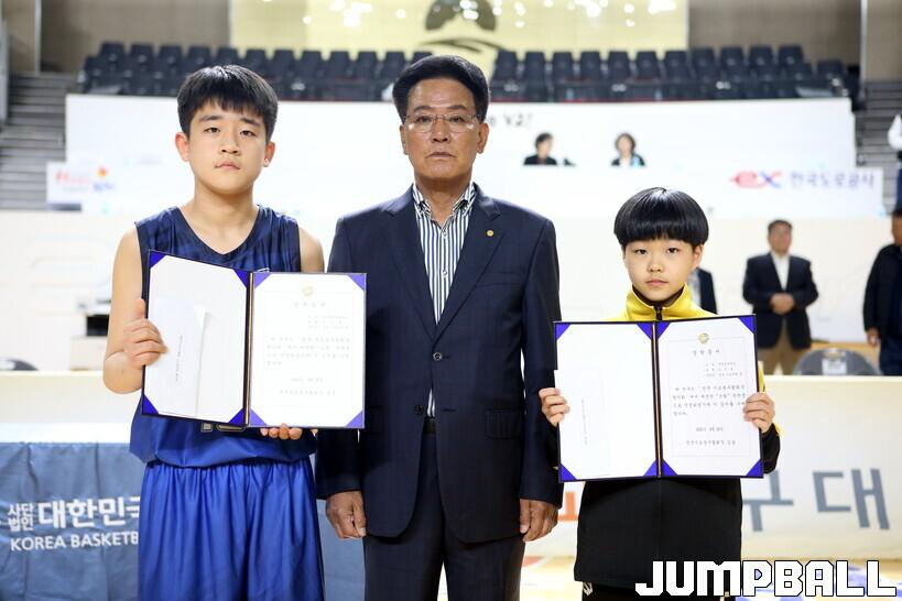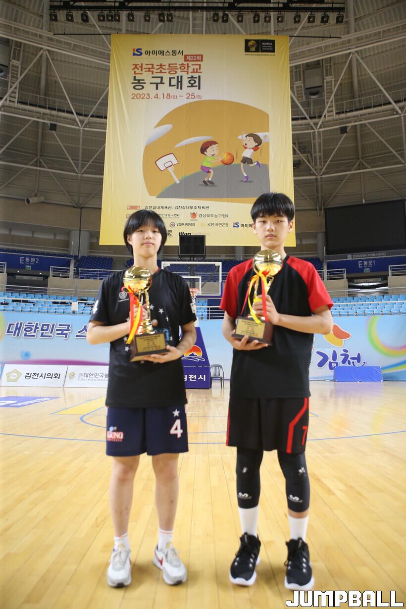[점프볼=김천/한필상 기자] 25일 김천 실내체육관에서 열린 제22회 전국초등학교 농구대회가 7박 8일간의 일정을 모두 마쳤다. 각 종별 최우수 선수에는 송정초 조진우와 수정초 전하연이 수상을 했으며, 이성구 장학회에서 주는 장학생에는 송정초 정백호와 수정초 허정원이 선정됐다.