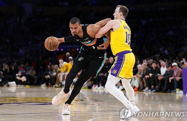 샌안토니오 스퍼스는 11일(이하 한국시간) 미국 캘리포니아주 로스앤젤레스 크립토닷컴 아레나에서 열린 NBA 2025-2026시즌 정규리그 LA 레이커스와의 경기에서 136-108로 승리했다.
