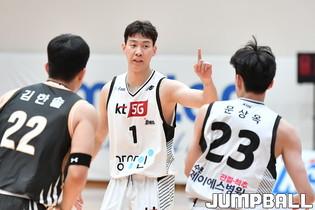 8일 이천 LG챔피언스파크 실내농구장에서 열린 2021-2022 KBL D리그 국군체육부대와 KT의 경기. KT 박준영이 3점슛을 던지고 있다.