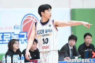 [점프볼=이천/박상혁 기자] 21일 이천 LG챔피언스파크에서 열린 2024-2025 KBL D리그 현대모비스와 KCC의 경기, 현대모비스 강현수가 수비를 하고 있다.