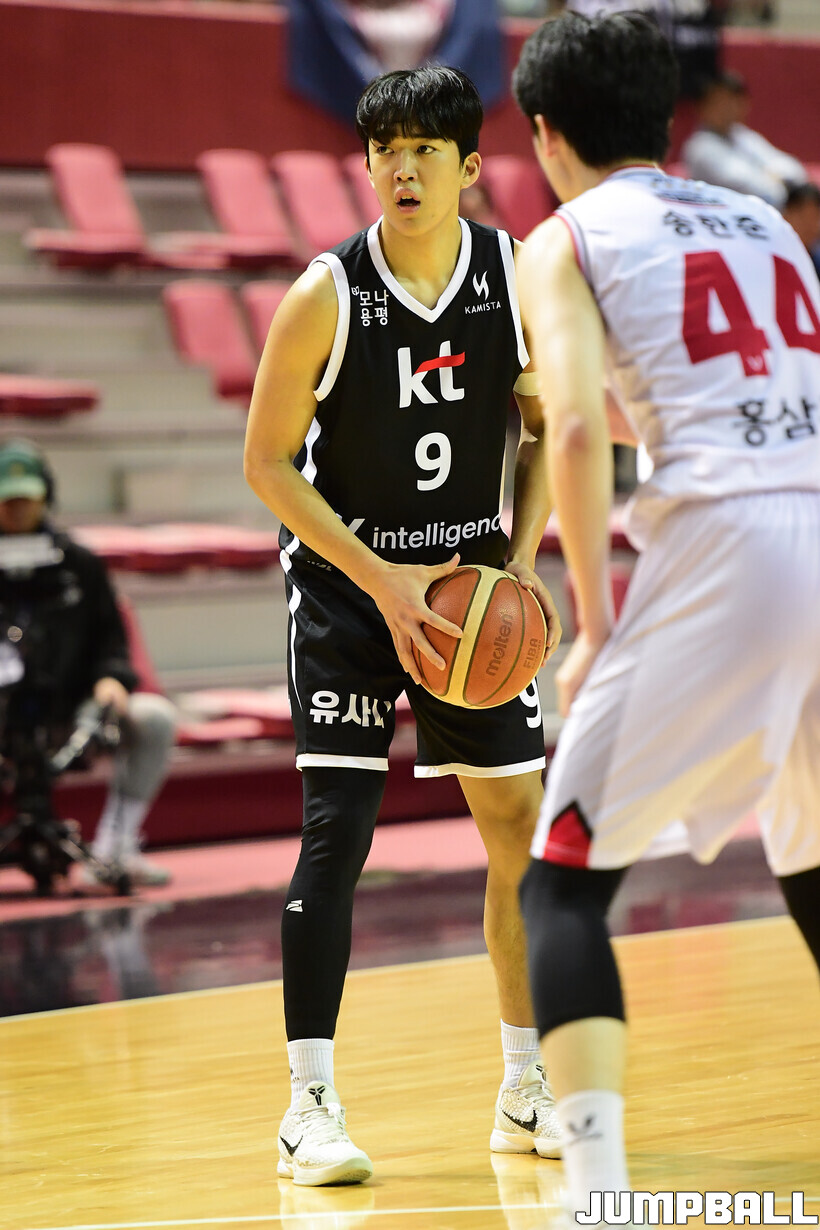 전반은 역전을 주고받는 승부가 이어졌다. KT가 1쿼터에 10점을 합작한 박지원(6점), 조환희(4점)를 앞세워 기선을 제압하자 정관장은 2쿼터에 제공권 우위(12-6)를 바탕으로 반격을 개시했다. 2쿼터 중반까지 팽팽한 승부를 이어가던 KT는 2쿼터 막판 이두원, 조환희가 연속 8점을 합작한 데에 힘입어 전반을 39-33으로 마쳤다.