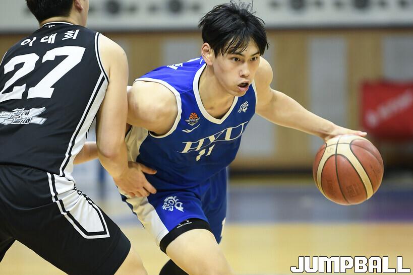 [점프볼=행당/유용우 기자] 23일 한양대 올림픽체육관에서 열린 2025 KUSF 대학농구 U리그 한양대와 조선대의 경기, 한양대 신지원이 돌파를 시도하고 있다.