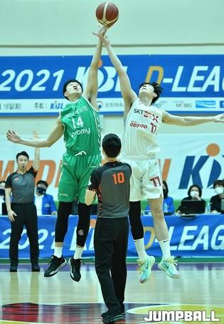 [점프볼=이천/유용우 기자] 9일 이천 LG 챔피언스파크에서 열린 2020-2021 KBL D-리그 2차 대회  SK와 DB의 경기, SK 박상권이 레이업 득점을 올리고 있다.