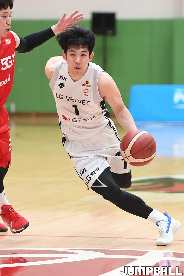 [점프볼=이천/박상혁 기자] 11일 이천 LG챔피언스파크에서 열린 2020-2021 현대모비스 프로농구 KBL 가리그 2차대회 서울 SK와 창원 LG의 준결승 경기, LG 이원대가 돌파를 시도하고 있다.
