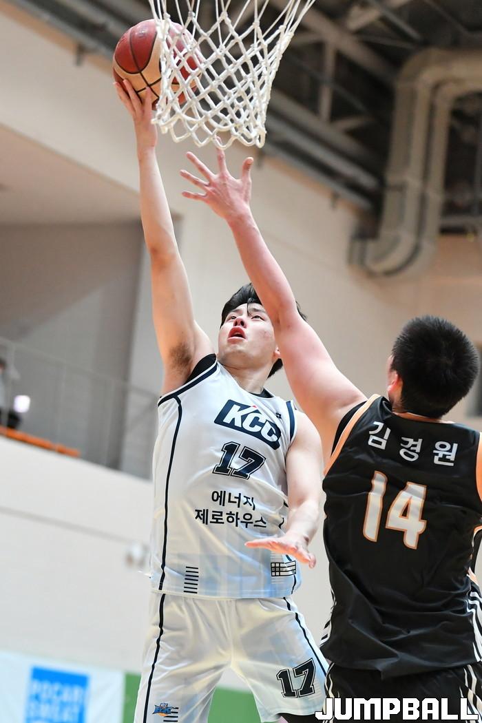 16일 이천 LG챔피언스파크 실내농구장에서 열린 2021-2022 KBL D리그 국군체육부대와 KCC의 경기. KCC 김동현이 상대 수비를 넘기면서 레이업을 올려넣고 있다.