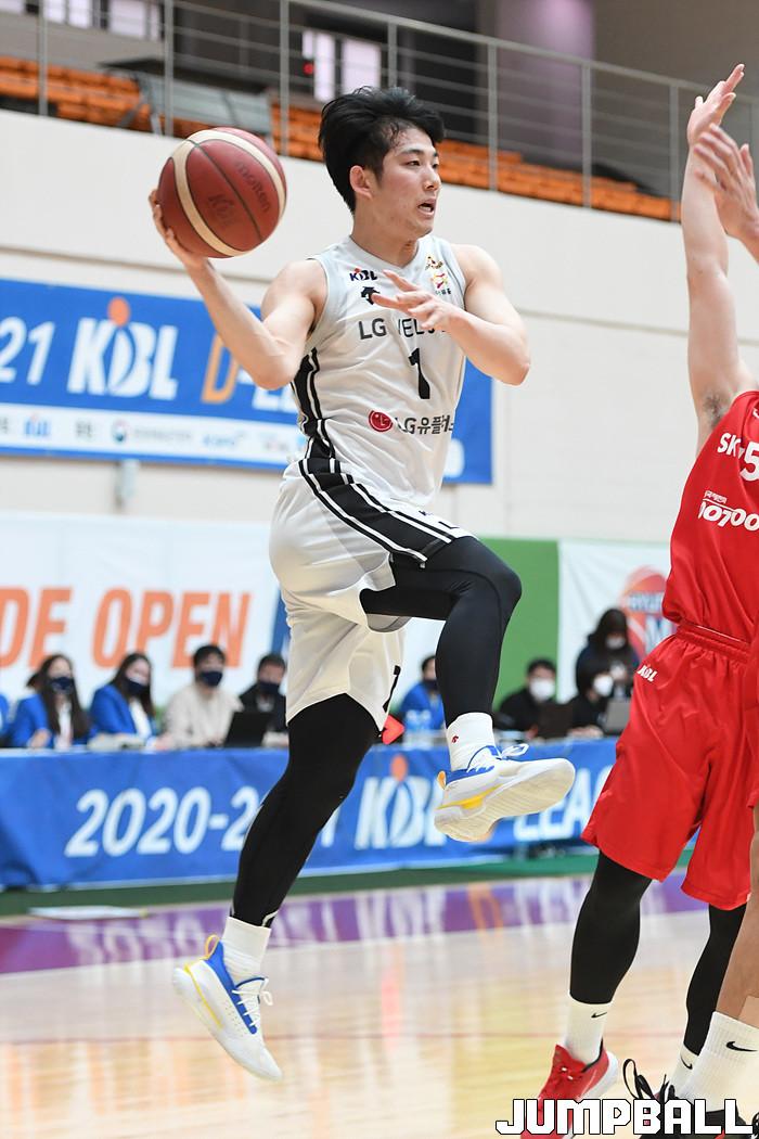 [점프볼=이천/박상혁 기자] 11일 이천 LG챔피언스파크에서 열린 2020-2021 현대모비스 프로농구 KBL 가리그 2차대회 서울 SK와 창원 LG의 준결승 경기, LG 이원대가 패스를 시도하고 있다.