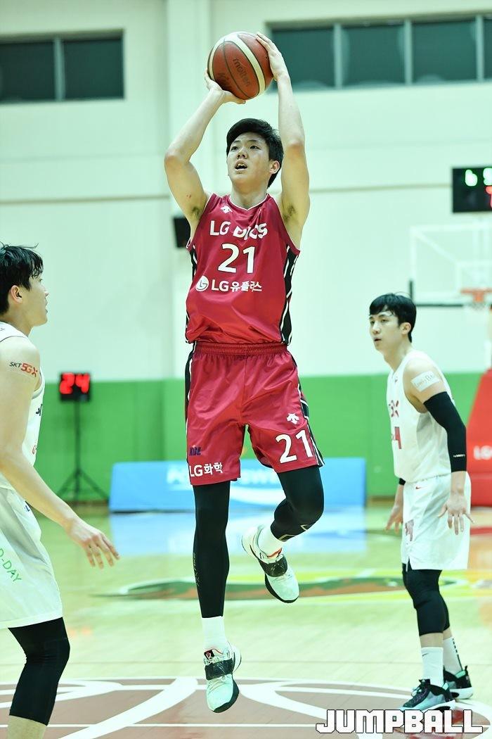 [점프볼=이천/유용우 기자] 03일 이천 LG 챔피언스파크에서 열린 2020-2021 KBL D-리그 2차 대회 SK와 LG의 경기, LG 이광진이 중거리슛을 시도하고 있다.