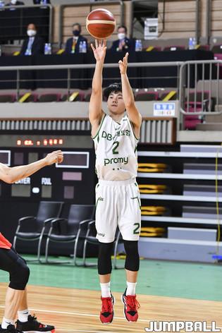 18일 경상북도 상주시 상주실내체육관에서 열린 2021 MG새마을금고 KBL컵 대회 서울 SK와 원주 DB의 결승 경기, DB 배강률이 점프슛을 던지고 있다.