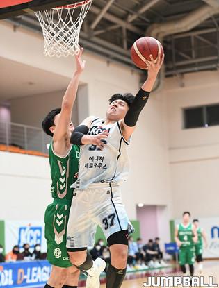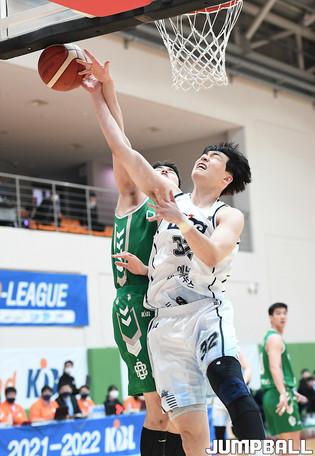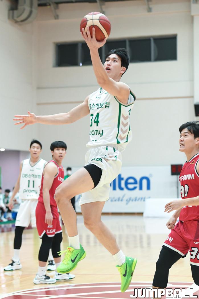 13일 경기도 이천에 위치한 LG챔피언스파크에서 열린 2021-2022 KBL D리그 원주 DB와 창원 LG의 경기, DB 이준희가 레이업슛을 시도하고 있다.