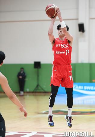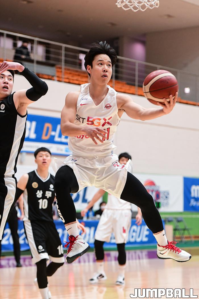 [점프볼=이천/박상혁 기자] 4일 경기도 이천 LG챔피언스파크에서 열린 2020-2021 KBL D리그 1차대회 SK와 상무의 결승전 경기, SK 김준성이 더블 클러치를 시도하고 있다.
