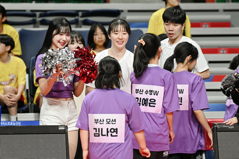 수정초 6학년 이서진은 “진안(하나은행) 선수 팬이다. 부산 BNK썸 경기 때 애국가를 제창하러 온 적 있다. 그때 진안 선수가 BNK 소속이었다. 플레이를 봤는데 너무 멋있었다. 미디어데이도 보러 갔다. 이 경험을 통해서 농구선수를 향한 꿈이 더 커졌다”라고 웃었다.