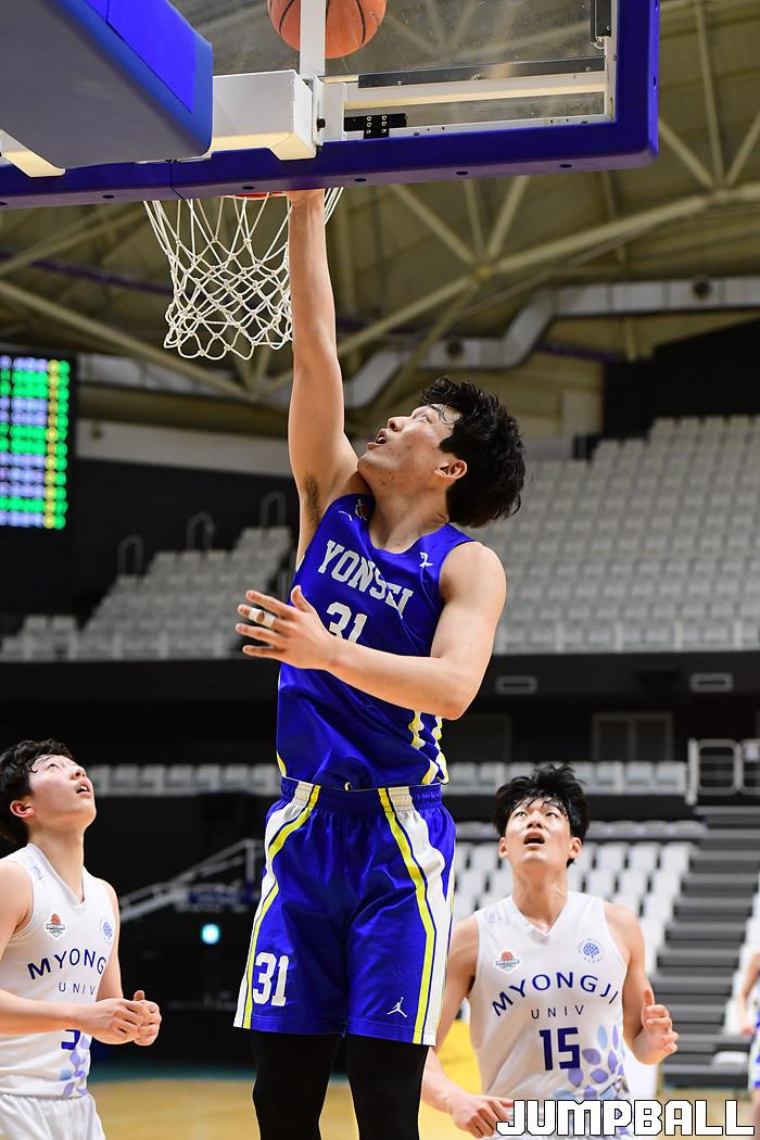 [점프볼=수원/박상혁 기자] 25일 서수원칠보체육관에서 열린 2021 KUSF 대학농구 U-리그 연세대와 명지대의 경기, 연세대가 명지대에 93-64로 승리했다. 연세대와 명지대 경기 화보