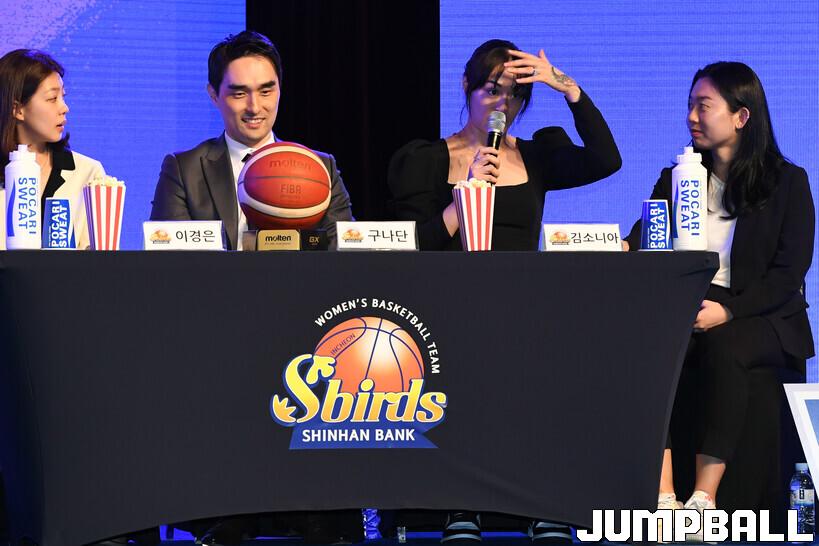6일 여의도 63컨벤션센터 그랜드볼룸에서 열린 신한은행 SOL 2202-2023 여자프로농구 플레이오프 미디어데이, 신한은행 김소니아가 우승 공약을 얘기하고 있다.