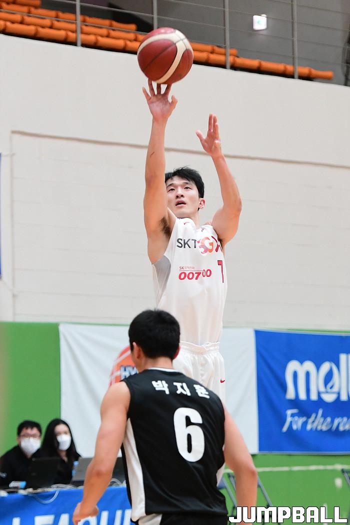 [점프볼=이천/박상혁 기자] 4일 경기도 이천 LG챔피언스파크에서 열린 2020-2021 KBL D리그 1차대회 SK와 상무의 결승전 경기, SK 변기훈이 3점슛을 시도하고 있다.