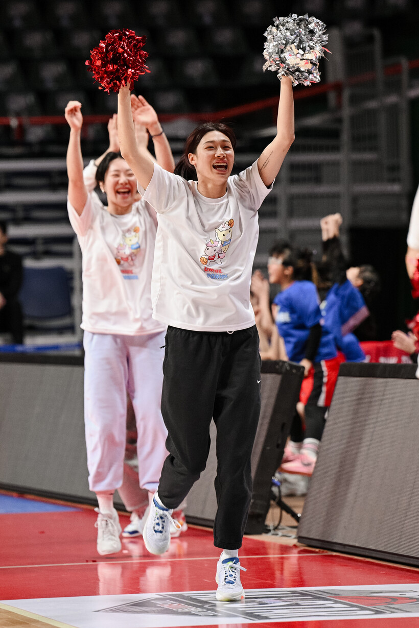 이해란은 “응원부터 지려고 하지 않았다. 웃으면서 하려고 하다보니 그랬다. 진안 언니의 퍼포먼스는 따라가지 못한다. 내가 졌다(웃음). 평소에도 자유투 방해도 한번 해보고 싶었다. 치어리더가 되고싶었는데 극한직업이라는 건 다시금 느낀다”라고 말했다.