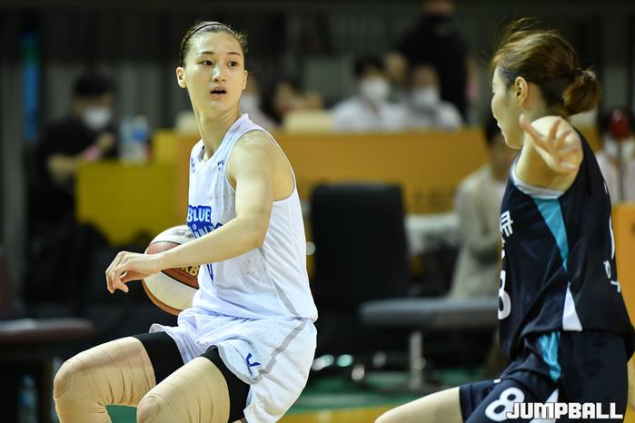 [점프볼=청주/유용우 기자] 21일 청주체육관에서 열린 '2020 우리은행 박신자컵 서머리그' 하나원큐와 삼성생명의 결승전, 삼성생명 윤예빈이 경기를 리딩하고 있다.