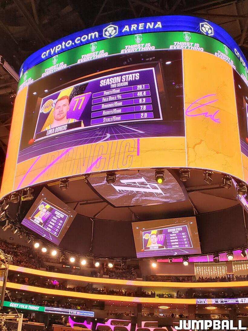 팁오프 시간이 임박하자 르브론 제임스, 오스틴 리브스, 잭슨 헤이즈, 루이 하치무라와 함께 선발 라인업에 돈치치가 올랐다고 발표되어, 레이커스 팬들의 기대감을 증폭시켰다.
