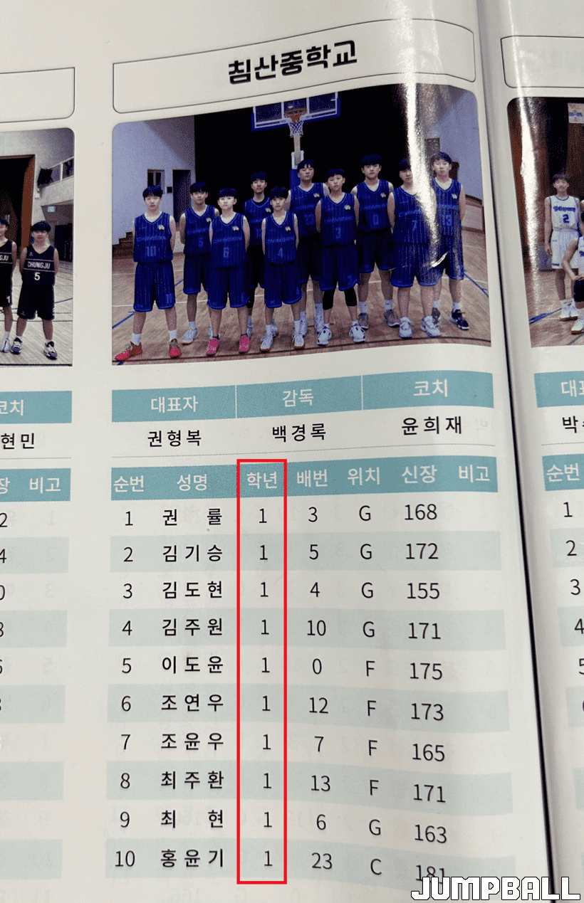 대구에 위치한 침산중은 2023년 선수 수급 문제로 농구부 운영이 중단되는 아픔을 겪었다. 이후 2024년 윤희재 코치가 지휘봉을 잡으며 팀은 다시 출발선에 섰다. 그해 경상북도 김천에서 열린 연맹회장기에는 출전 선수 10명이 모두 1학년으로 구성돼 눈길을 끌었다.