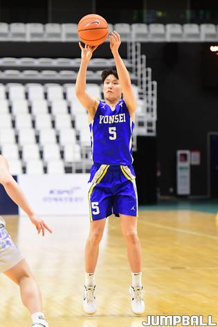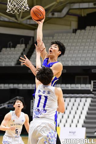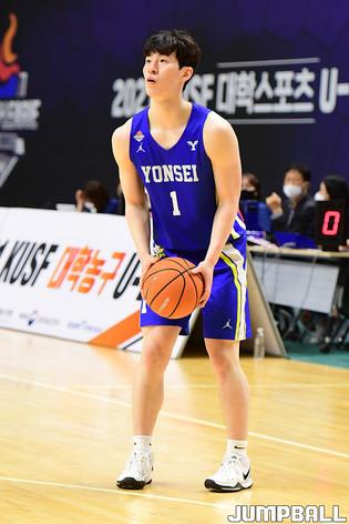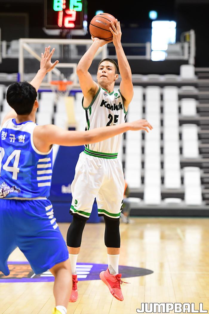 [점프볼=수원/박상혁 기자] 25일 서수원칠보체육관에서 열린 2021 KUSF 대학농구 U-리그 건국대와 조선대의 경기, 건국대 최승빈이 3점슛을 시도하고 있다.