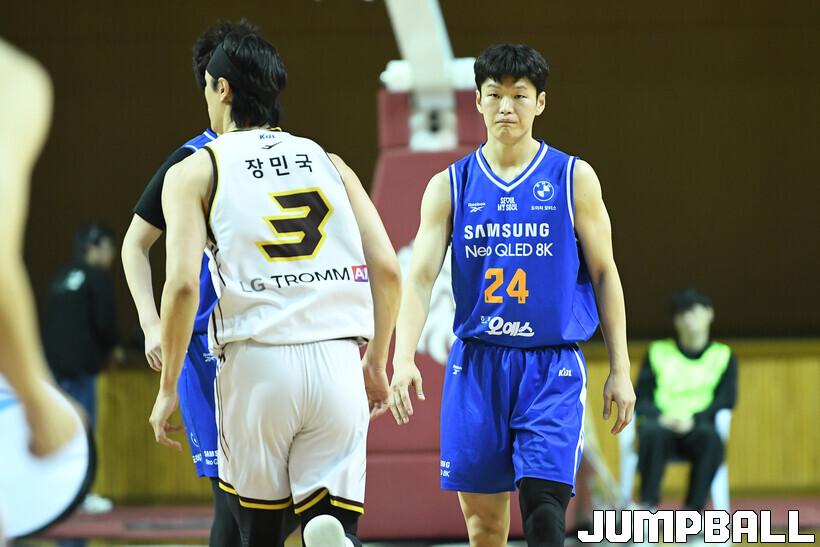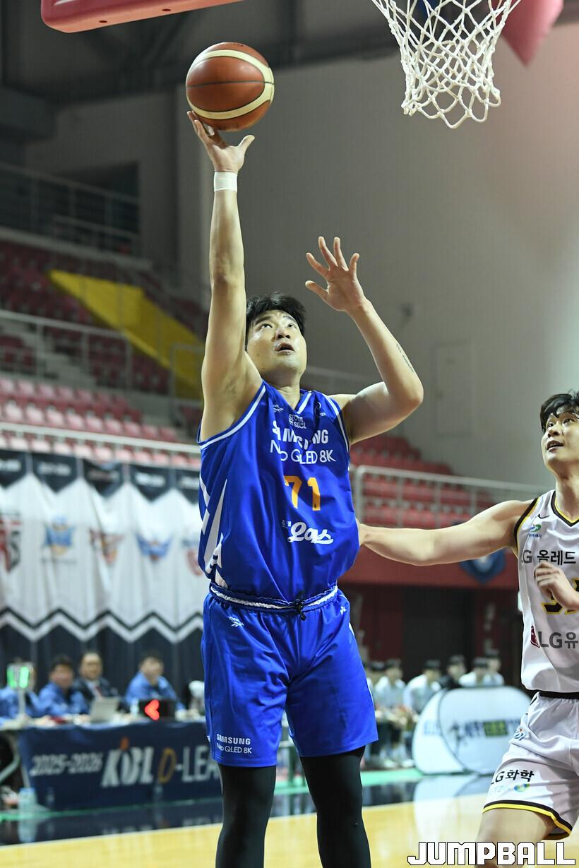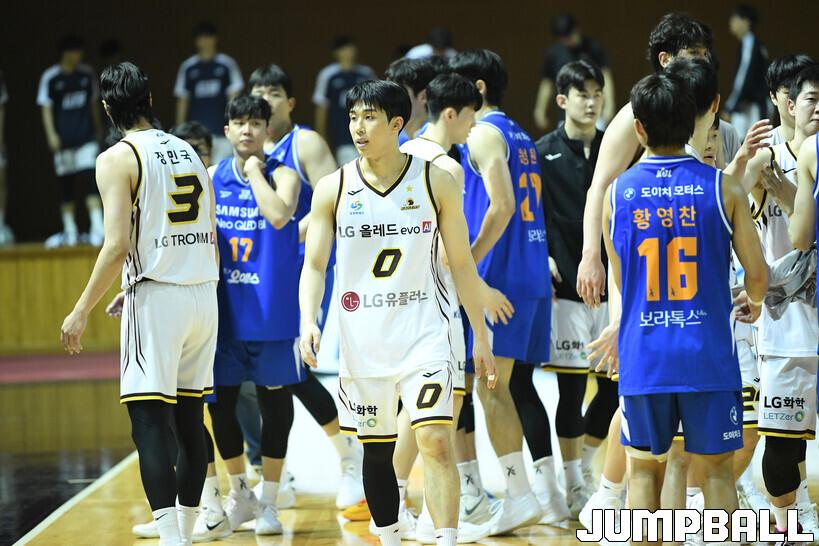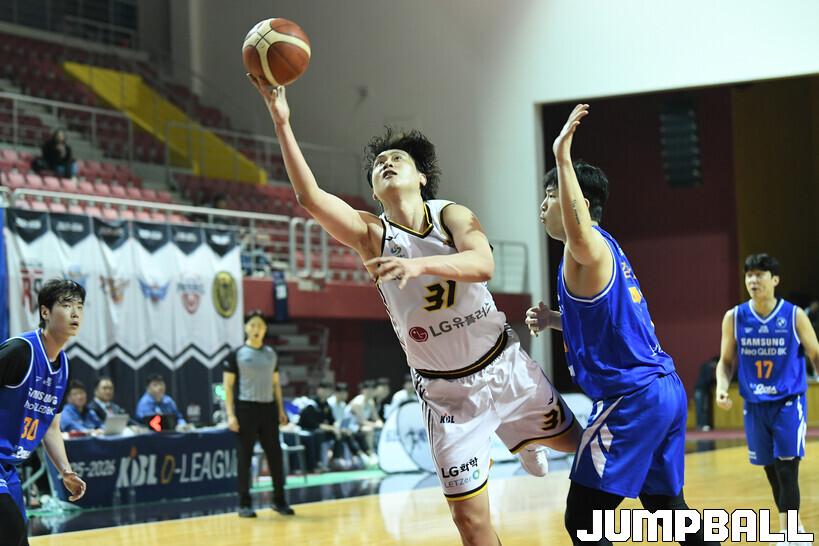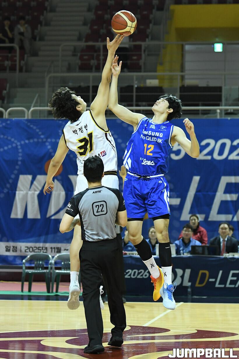 [점프볼=용인/유용우 기자] 24일 경희대 선승관 체육관에서 열린 2025-2026 KBL D리그 서울 삼성과 창원 LG의 경기, LG가 박정현의 더블더블(23점 11리바운드)에 힘입어 73-62로 삼성에 승리했다.