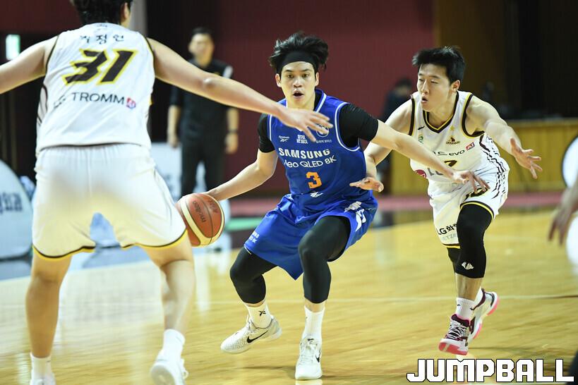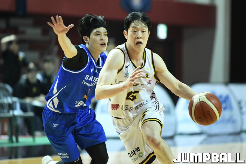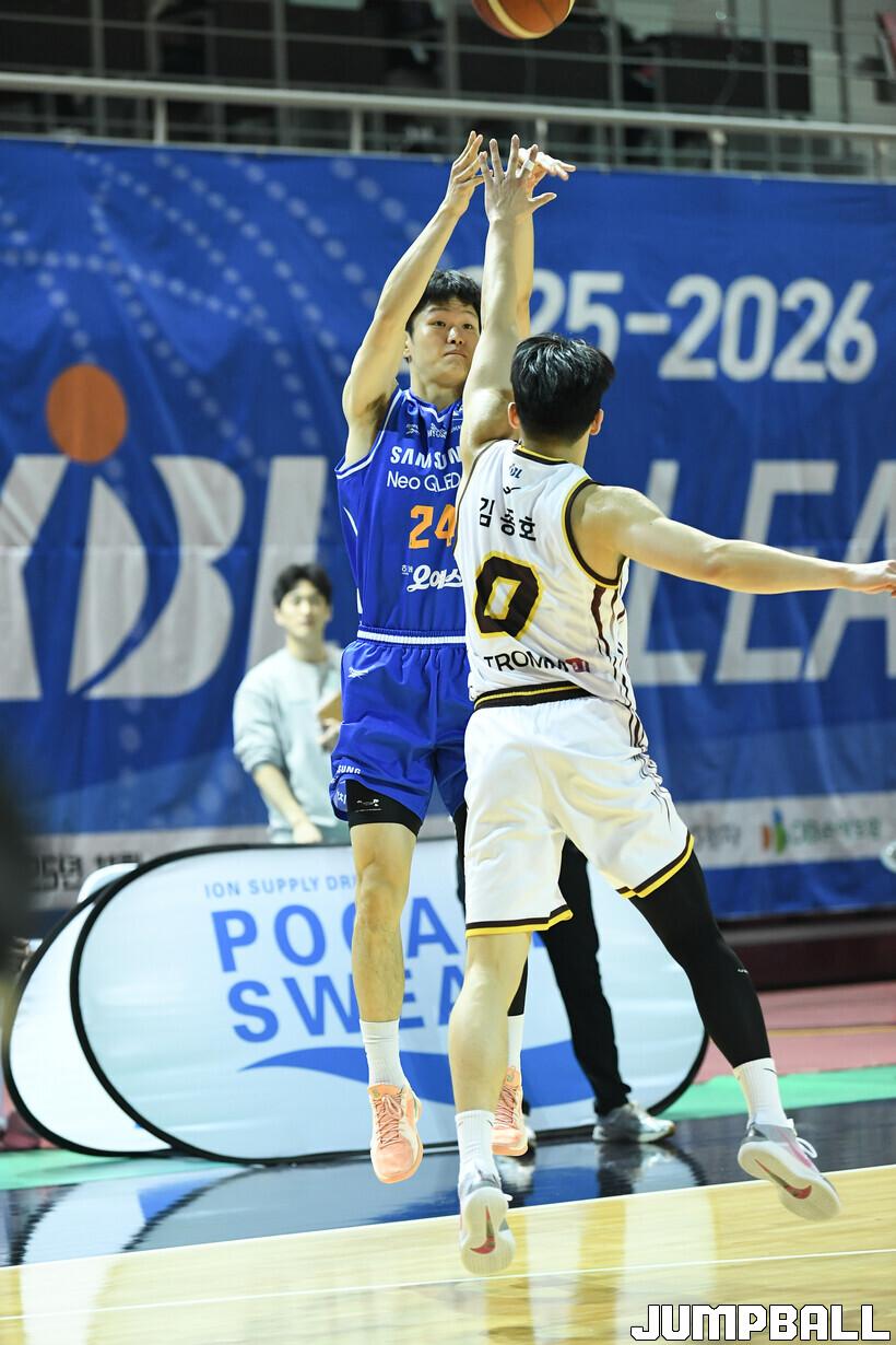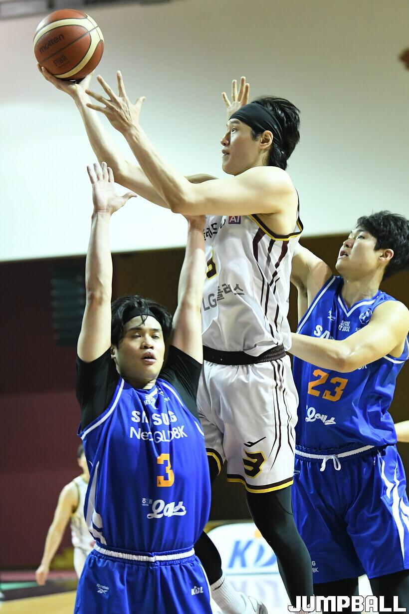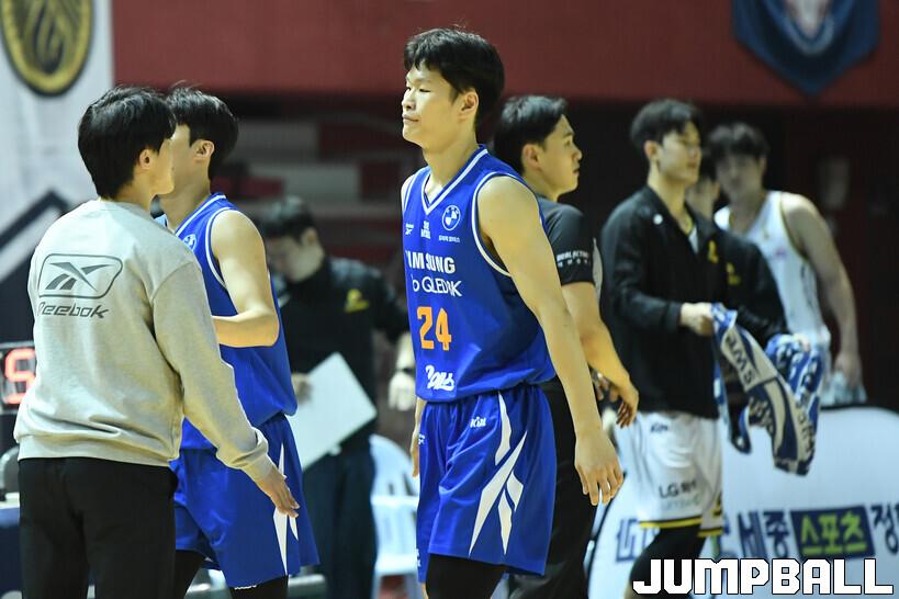 [점프볼=용인/유용우 기자] 24일 경희대 선승관 체육관에서 열린 2025-2026 KBL D리그 서울 삼성과 창원 LG의 경기, LG가 박정현의 더블더블(23점 11리바운드)에 힘입어 73-62로 삼성에 승리했다.
