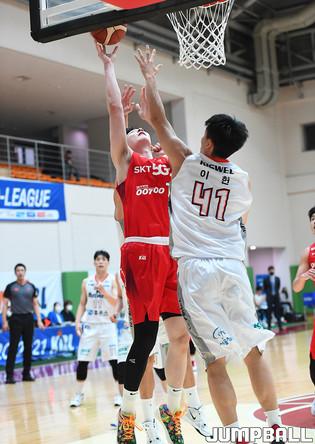 [점프볼=이천/문복주 기자] 17일 이천 LG챔피언스파크에서 열린 D리그 1차 원주 DB와 서울 삼성의 경기, DB 이윤수가 경기시작 점프볼을 선점하고 있다.