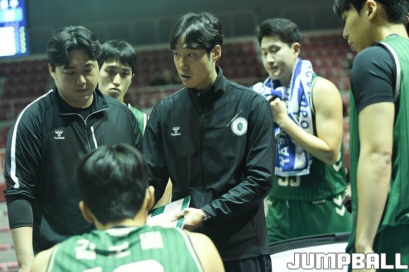 [점프볼=용인/유용우 기자] 23일 경희대 국제캠퍼스 선승관에서 열린 2025-2026 KBL D리그 울산 현대모비스와 원주 DB의 경기, DB 이광재 코치가 작전을 지시하고 있다.