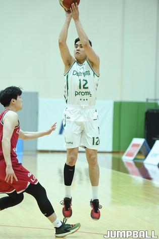 13일 경기도 이천에 위치한 LG챔피언스파크에서 열린 2021-2022 KBL D리그 원주 DB와 창원 LG의 경기, LG 윤원상이 3점슛을 시도하고 있다.