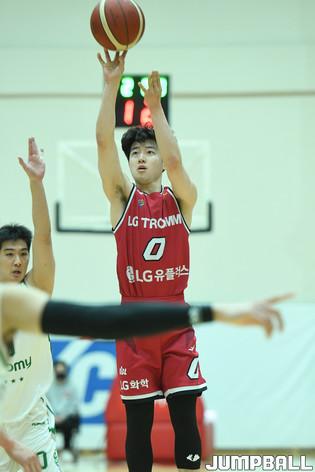 13일 경기도 이천에 위치한 LG챔피언스파크에서 열린 2021-2022 KBL D리그 원주 DB와 창원 LG의 경기, DB 정호영이 지시를 하고 있다.