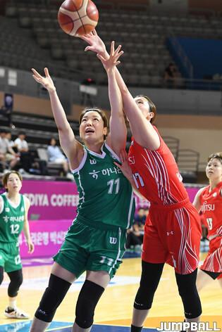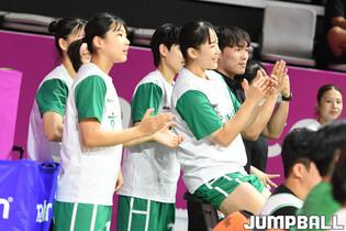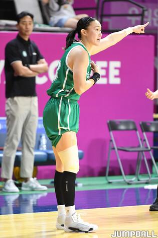 [점프볼=아산/박상혁 기자] 3일 아산 이순신체육관에서 열린 2024 우리은행 박신자컵 부천 하나은행과 후지쯔 레드웨이브의 경기, 하나은행 박소희가 진안과 하이파이브를 하고 있다.