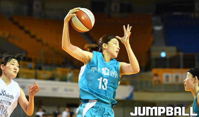 [점프볼=청주/문복주 기자] 16일부터 21일까지 청주체육관에서 '2020 우리은행 박신자컵 서머리그' 하나원큐와 신한은행의 경기, 하나원규 양인영이 수비리바운드를 잡아내고 있다.